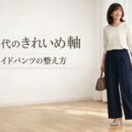 ワイドパンツは体のラインを拾いにくく、40代の毎日に取り入れやすいアイテムです。だからこそ、何を合わせてもいいわけではなく、きれいめに見えるポイントを絞っておくと、普段着にも通勤にも使いやすくなります。ここでは、40代が無理なく取り入れやすいワイドパンツコーデの基本を、選び方と合わせ方の両方から整理します。