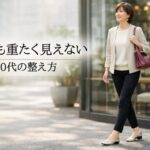 50代が黒スキニーで重たく見えないためには、細さを優先するより、マットな素材・もたつかない丈・軽さを足せるトップスと足元を意識することが大切です。この3点を優先して選ぶと、黒の引き締め感を生かしながら、きれいめにも自然につなげやすくなります。