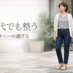 50代がスキニーデニムを選ぶときは、流行だけで判断しなくて大丈夫です。古いかどうかより、今の自分に合わせて無理なく整って見えるかどうかを見るほうが、ずっと実用的だと思います。