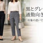 通勤用のテーパードパンツを選ぶとき、黒とグレーのどちらが使いやすいのか迷いますよね。先に方向性をお伝えすると、きちんと感と引き締め感を優先するなら黒、やわらかさと抜け感を優先するならグレーが合わせやすいです。