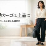 バッグやアクセサリーも重要です。ナイロンリュックや大きすぎるトートは便利ですが、組み合わせによってはラフさが強く出ます。通勤用なら、レザー調のトートやシンプルなショルダーのほうがきれいめに寄せやすいです。アクセサリーは華美でなくても、細めのネックレスや小ぶりのピアスが入るだけで大人っぽく見えます。