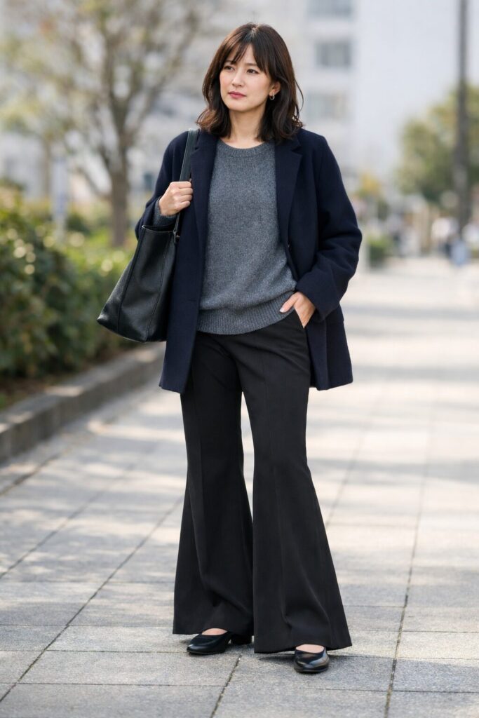 【40代では少し重たく見えやすいフレアパンツの着こなし】