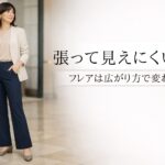 フレアパンツは広がること自体が問題なのではなく、どこからどう広がるかで見え方が変わります。自分の気になる部分を拾いすぎない形を選ぶと、下半身をすっきり見せながら上品に履きやすくなると思います。