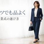 卒業式でテーパードパンツスーツを選ぶなら、見るべきなのはパンツそのものより、全身のきちんと感です。細すぎない形・落ち着いた色・短すぎない丈を意識すると、失礼に見えにくく、無理のない上品さにまとまりやすいと思います。