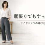 腰まわりが張っていると、ワイドパンツをはいたときに横に広がって見えたり、下半身全体が大きく見えたりしないか気になりますよね。そんな方は、幅が広いことよりも、腰まわりはすっきり・裾に向かって自然に落ちる形を優先すると、ぐっと取り入れやすくなります。