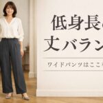 この記事は、低身長でワイドパンツが重たく見えやすい方、きれいめに取り入れたい方、ぺたんこ靴でもバランスを崩しにくい丈を知りたい方に向いています。