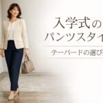 入学式にテーパードパンツを選ぶなら、「細すぎない形」「きれいめ素材」「上半身と足元の上品さ」をそろえるのが近道です。パンツかスカートかで迷うより、全身で見たときに式らしい整い方になっているかを基準にすると、失敗しにくいと思います。
