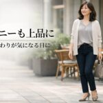 気になるときほど、隠すことだけに寄せるより、股上・素材・丈感・羽織りとのバランスを整えて選ぶのがおすすめです。ぴったりしすぎない細さと、腰まわりをやわらかくぼかせる着こなしがそろうと、スキニーはお腹ぽっこりが気になる大人女性にも取り入れやすい一本になると思います。