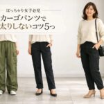 カーゴパンツをはいてみたいけれど、ぽっちゃり体型だと下半身が大きく見えそうで迷っていませんか。結論からいうと、太すぎない形・落ち感のある素材・重心を上げる合わせ方を意識すれば、カーゴパンツでも着太りしにくく、大人っぽくすっきり着こなしやすくなります。