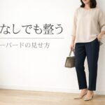 テーパードパンツは、必ずしもトップスをインしないと着こなしにくいわけではありません。丈が長すぎないこと、裾が広がらないこと、足元に軽さを出すことを意識すると、無理にインしなくても大人らしく整いやすいです。気になる部分を隠すことより、全身の流れがきれいに見える条件で選んでみてください。