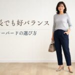 また、ヒールを履く前提で考えすぎないのも大切です。フラットシューズや細身ローファーでも裾がもたつかず、重たく見えにくいかを基準にすると、日常で着回しやすい一本を選びやすくなります。低身長さんにとって大事なのは、特別な工夫よりも、全身のつながりが自然に見えることなのだと思います。