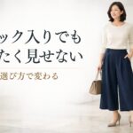 お腹まわりが気になると、タック入りガウチョはかえって膨らんで見えそうで迷いますよね。結論からいうと、タック入りガウチョは選んで大丈夫ですが、タックの深さや生地の落ち感を見て選ぶことが大切です。