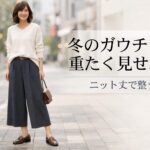 冬のガウチョにニットを合わせるときは、暖かさだけでなく、丈・裾の収まり・足元とのつながりまで一緒に見るのが大切です。